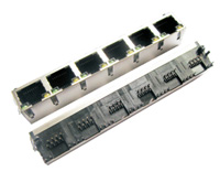 8P8C带LED六联体屏蔽网络插座,PCB插座