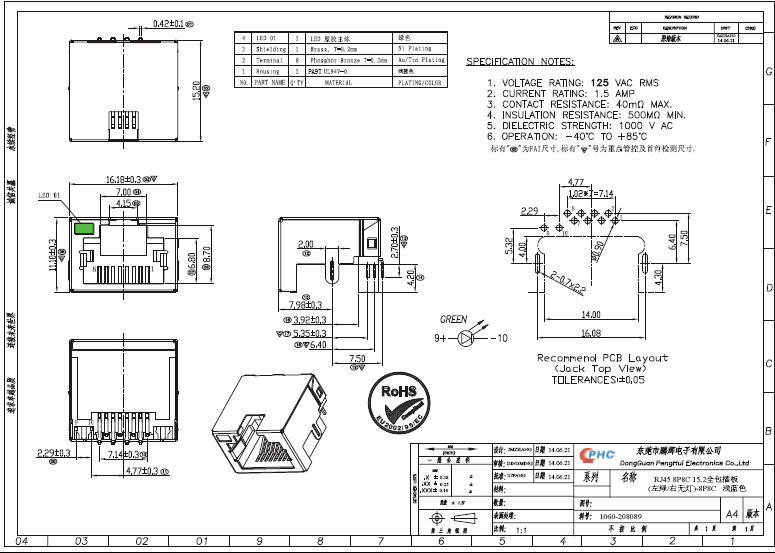 塑壳:玻璃纤维填充PBT(UL94V-0)