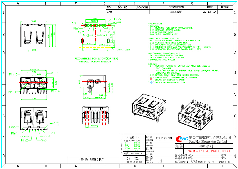 订购:(新产品)USB2.0 A TYPE RECEPIACLE DOUBLE