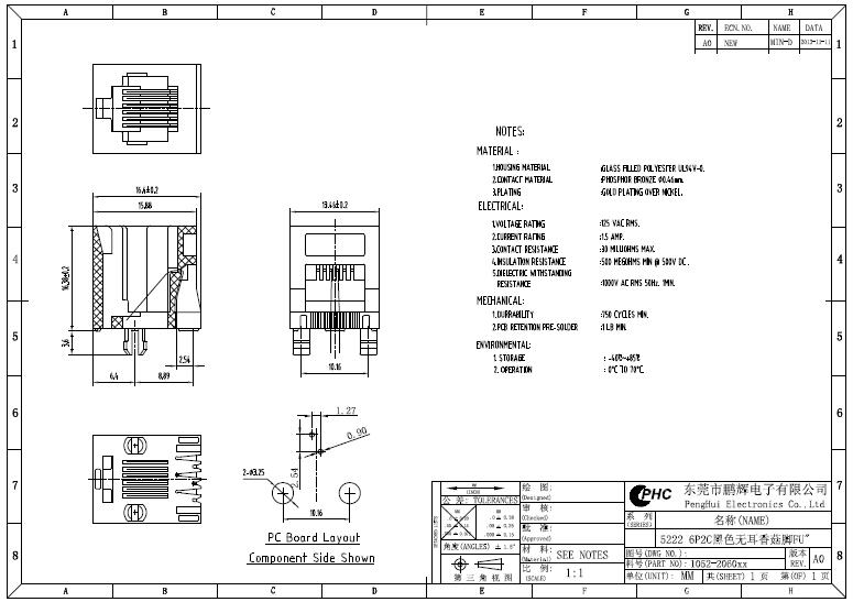 订购:RJ11 母座 6P2C 180度全塑无耳 PCB板直插式