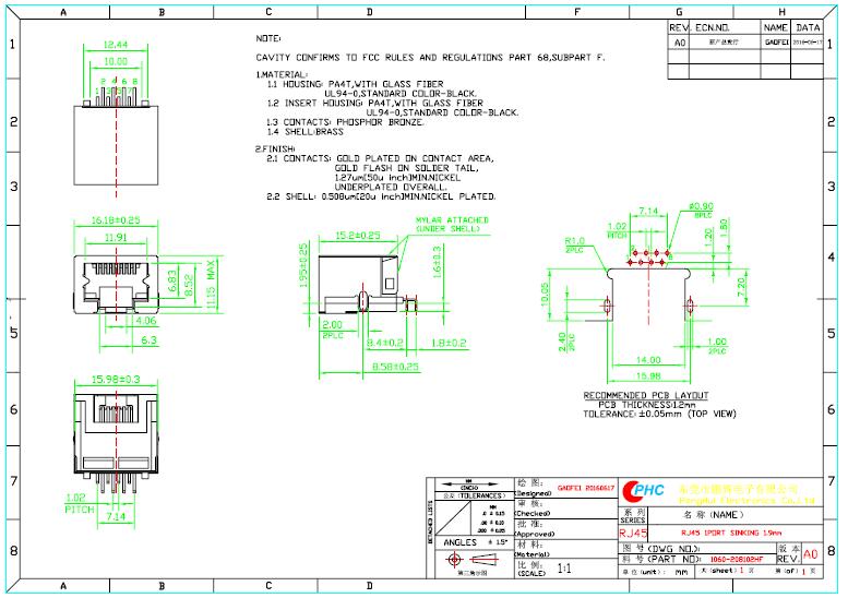 订购:沉板式RJ45 8P8C 无卤网口(1060-208102HF)