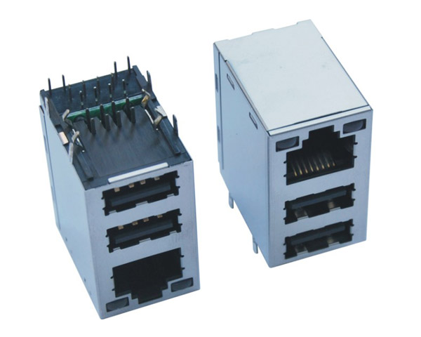 RJ45 二合一 带百兆变压器,RJ45接口+USB接口带灯带导光柱 RBA-023B-06F6-2Y