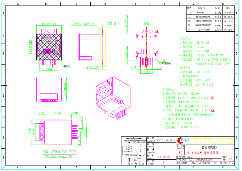 订购:RJ11 6P6C SMT电话母座(PH1052-206003)